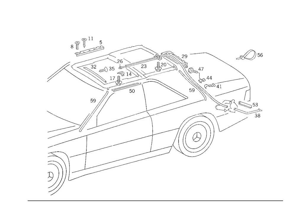 On sliding roof drive cable conduit under roof panelling.
